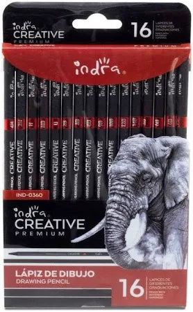COLECCIÓN DE LÁPICES DE GRAFITO DE DIFERENTES GRADUACIONES DE DUREZA, DEL 4H HASTA EL 14B, 16 PIEZAS. MARCA INDRA CREATIVE MODELO IND-0360