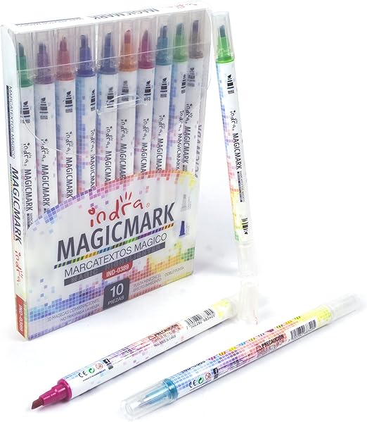 MARCATEXTOS MÁGICOS DOBLE PUNTA, PUNTA CINCEL, 10 MAGICAS COMBINACIONES. MODELO MAGIMARK. MARCA INDRA.