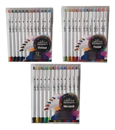 Plumones retráctiles INDRA RETRAMARK, 12 piezas punta fina, punta de bala de 0.6 mm, colores VINTAGE