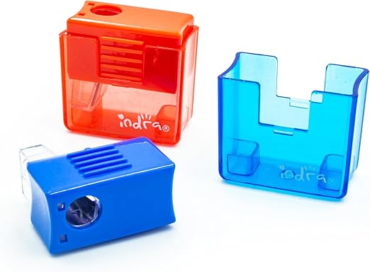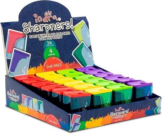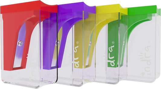 Sacapuntas con depósito marca INDRA, 4 diferentes colores.
